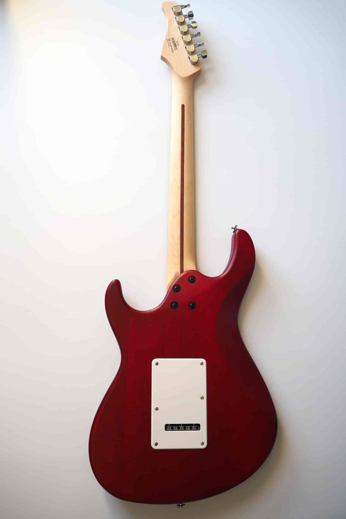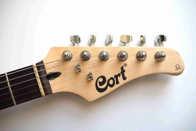 Cette guitare est l'entrée de gamme de la marque Cort et pourtant, la fabrication est soignée : pas de bavures de peinture, de veines de bois inesthétique. Même les bords de frettes sont limées avec précisions.