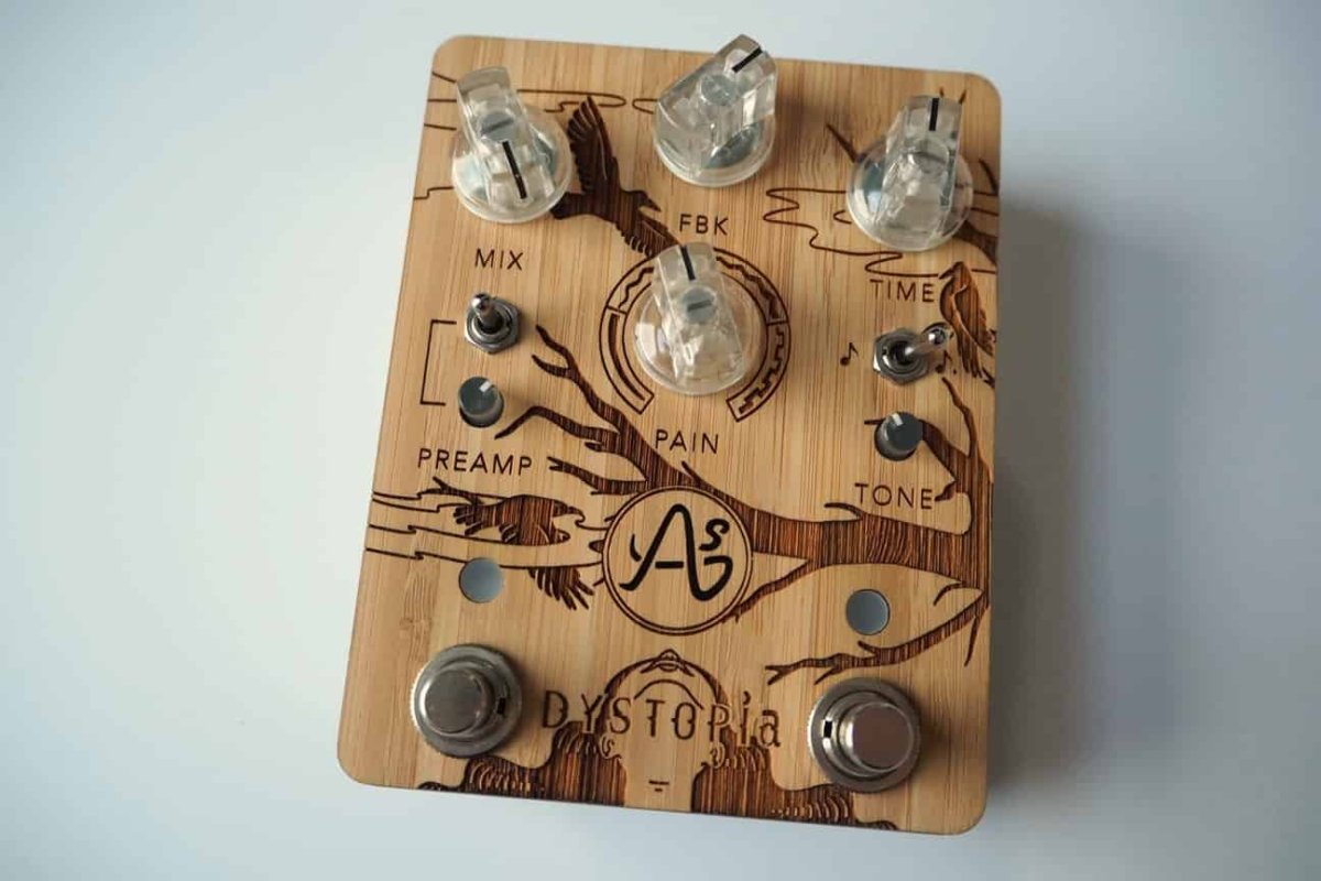 Basée sur une puce PT2399, la Dystopia conserve une utilisation simple et efficace : des réglages familiers (mix, feedback, time), un tap tempo avec accès à l’auto-oscillation, un contrôle de tonalité des répétitions et un mini-switch de subdivisions rythmiques. Mais elle s’en distingue par un préampli (activable ou non) inspiré de la distorsion Electra et de préampli d'écho à bandes, placé après les répétitions, qui salit et booste les répétitions, à la manière des anciens échos à bande branchés dans des amplis déjà saturés.